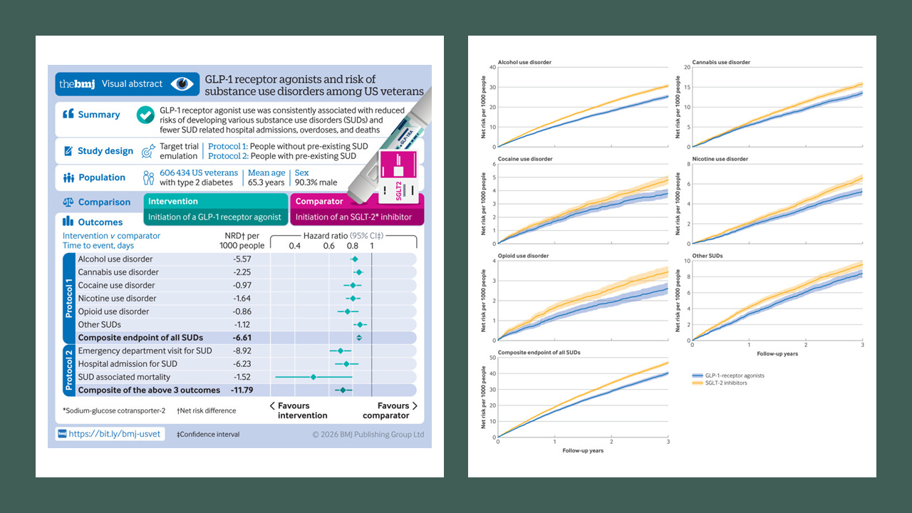 Cai M, Choi T, Xie Y, Al-Aly Z. Glucagon-like peptide-1 receptor agonists and risk of substance use disorders among US veterans with type 2 diabetes: cohort study. BMJ. 2026; 392:e086886. doi: 10.1136/bmj-2025-086886.